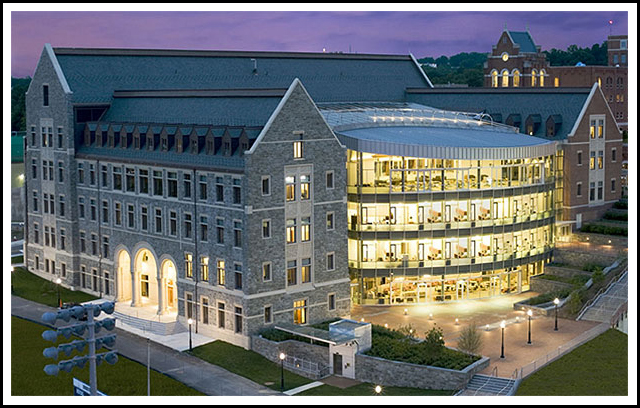 • The new McDonough School of Business (MSB) building is located within the Georgetown University Campus in Washington DC.  The building is comprised of two stories of below grade parking, and five stories above grade construction including offices, support spaces, common areas, and several large lecture spaces including a 2-story auditorium. Architect: Goody Clancy